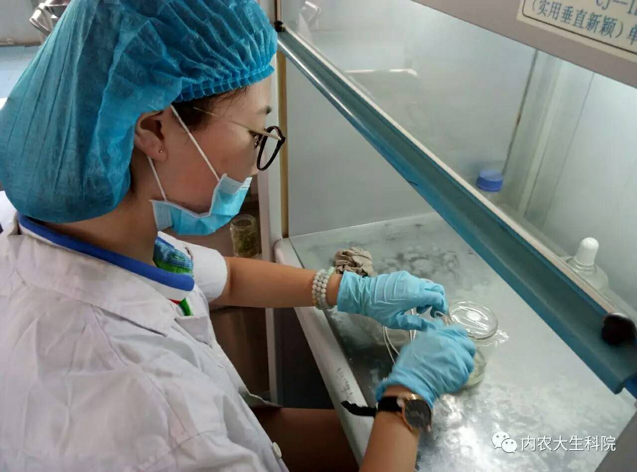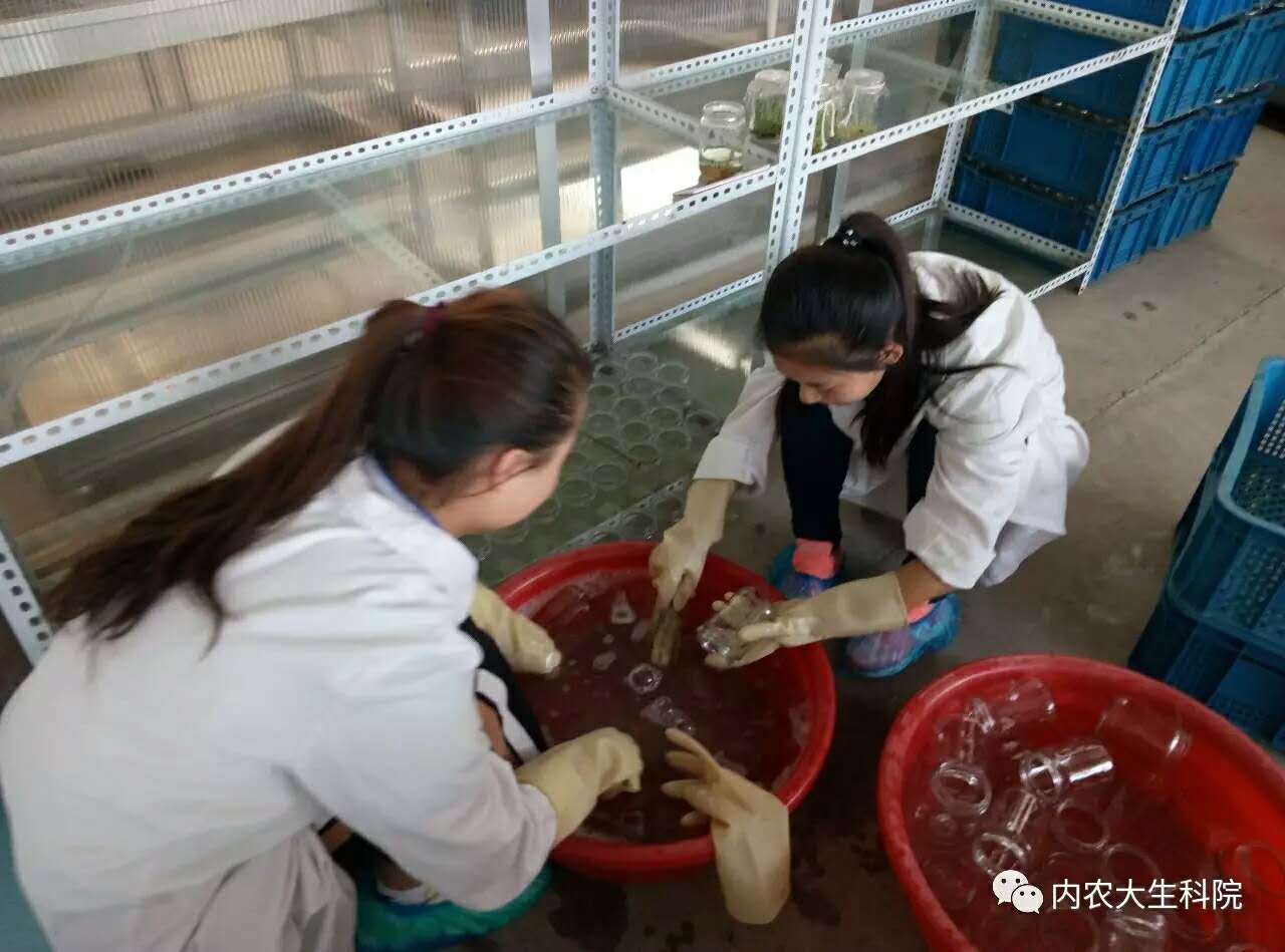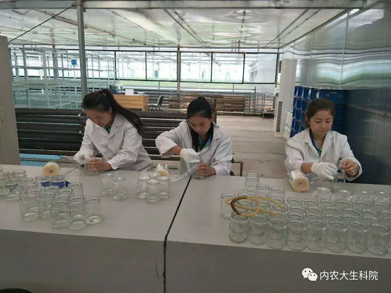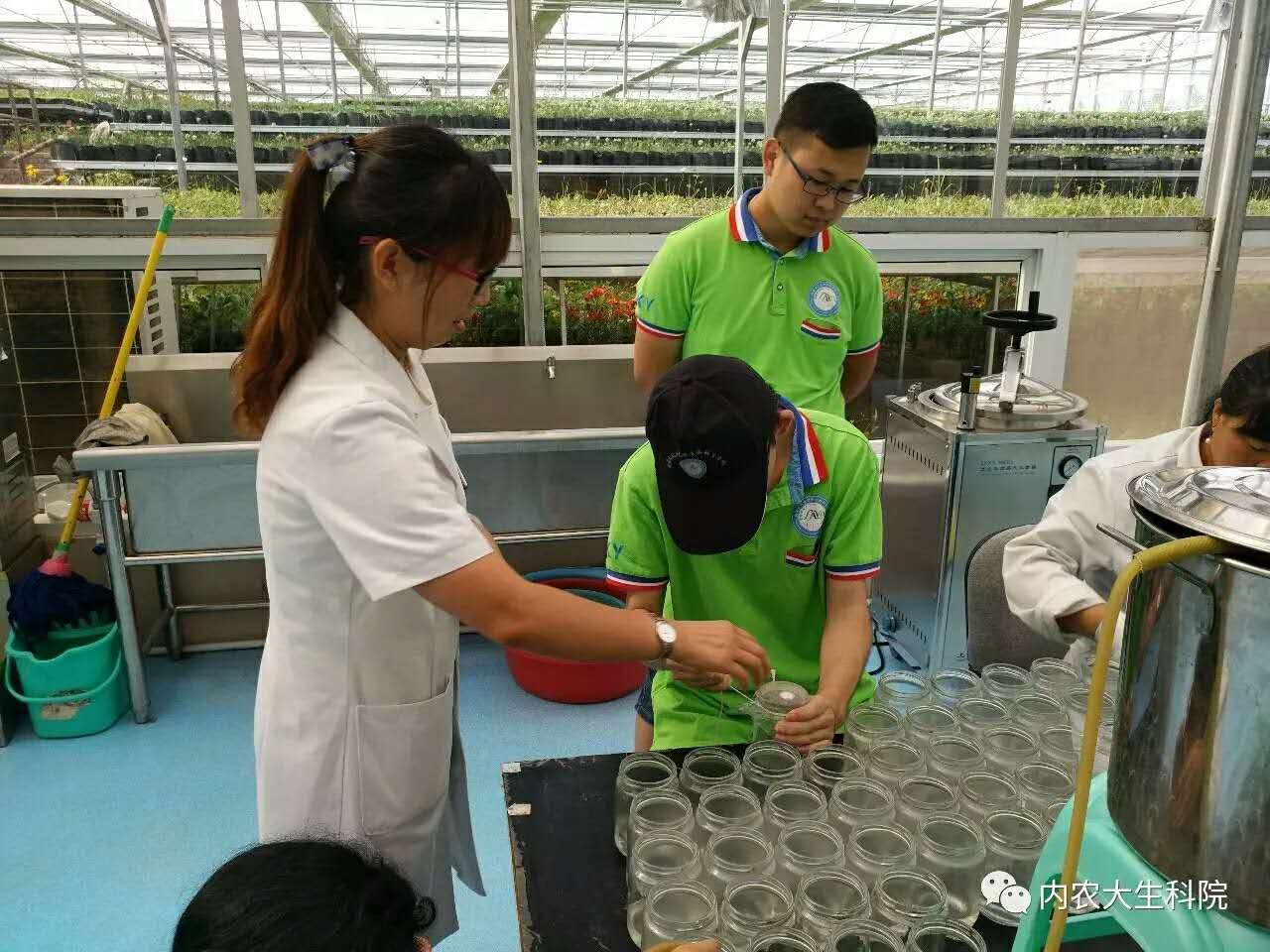 此次实践过程中,公司实践队员分为两队分别进入草博馆和研发中心,在研究员的带领下完成培养基封口,切苗,清洗培养皿等任务。培养基封口看似简单实则也需要一定的技巧,上午,在实验室工作人员的指导下,队员们一手戴手套,一手覆膜、握紧培养基,将绳子紧紧缠绕在瓶口,避免培养基被污染,随后打结封口。工作过程中,虽然手指摩擦得非常疼,但是队员们仍然坚持,逐渐熟悉流程,工作效率提高不少,完成400余份培养基封口工作。