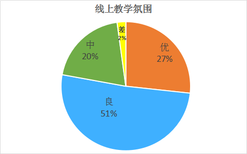 自开学近两月以来,公司线上教学运行顺利,教师已经充分掌握了各教学平台及工具的使用方式,员工满意度较高,并已经逐步适应了疫情期间特殊的学习方式,师生配合良好,较好地完成了教学任务。针对此问卷中同学们提出的意见和建议,公司将积极反馈,实时监控线上教学效果,为正式开学复课做好充分的准备。