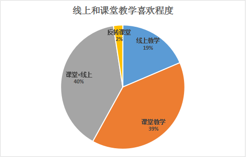 同学们这段时间对线上教学有了更多的了解,哪种授课模式更有助于员工学习呢? 复课后,还愿意接受线上教学吗?从调查来看,比起线上教学同学们还是更喜欢课堂教学,或者更愿意接受线上教学作为补充来开展教学: