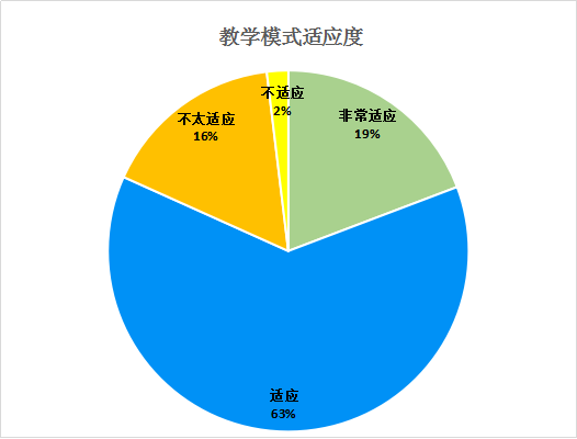 疫情期间,对于为期近两个月的线上教学模式,大部门同学们表示还是比较适应的(63%的同学适应,19%的同学非常适应):