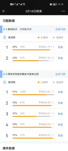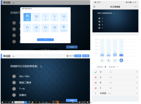 梁燕老师通过雨课堂的深度使用,使课堂“动”起来。一章结束后通过投稿功能督促大家回顾本章重点内容,而后汇总生成词云集大家的共同力量对本章内容进行梳理起到查漏补缺的作用。课堂投稿、习题的无缝切换使同学们真正的参与到课堂中。课后布置的章节作业,通过语音讲解,使大家对知识有更加深入透彻的理解,在巩固知识的同时,还鼓励大家通过多元化的方式对知识进行展示还增加了作业的趣味性。例如在DNA复制机制的教学过程中,充分发挥员工自主学习的能力,指导员工进行复制模型的制作和机制的讲解,极大的提升了教学效果。