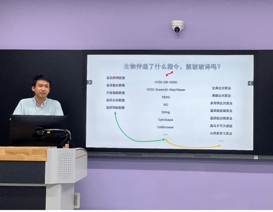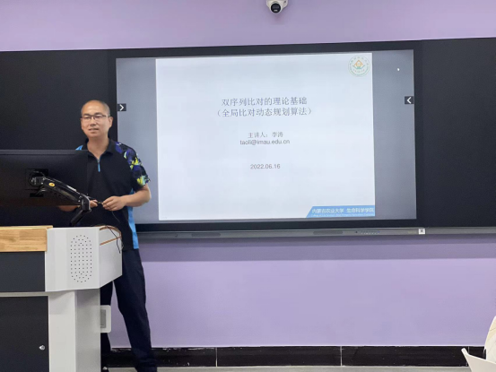 唐凯、李涛、李雪琼三位青年教师分别做了题为《GenBank数据库的使用》、《双序列比对动态规划算法(全局比对动态规划算法)》、和《序列比对实践应用——BLAST的使用》研讨报告。研讨会气氛热烈,老师们畅所欲言,积极讨论,对于课程打磨提出了针对性的改进意见。张文广经理作为生物信息学课程团队的一员也带头做了题为《生物信息学导论》的课程培训,他以生物信息学发展过程中做出突出贡献的科学家为切入点回答了生物学、计算机科学、数学、农学五类专业领域中生物信息学要解决的基本问题、基本数据、基本算法、基本工具是什么,为老师们上了一堂生动的生物信息学导论课,大家受益匪浅。