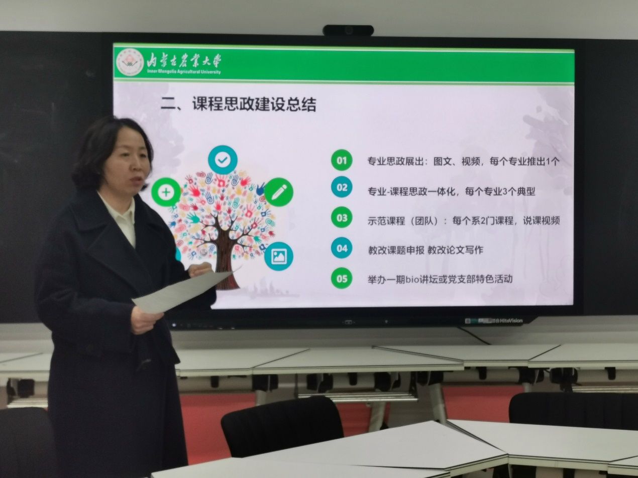 会议伊始,王玉珍副经理从总体思想、课程思政建设总结、专业建设和近期工作四个方面作了题为“生科院审核评估特色亮点工作谋划”的报告,她提出应以员工为中心的四位一体即“课程思政聚思想、生物技术创引领、理工融合兴农业、科技创新强素质”为总体思想,并对下一阶段的系内工作内容作了进一步部署安排。随后审核评估工作小组成员就试卷论文检查提出优化方案,建立实习实验报告规范化要求,提高员工的规范意识。