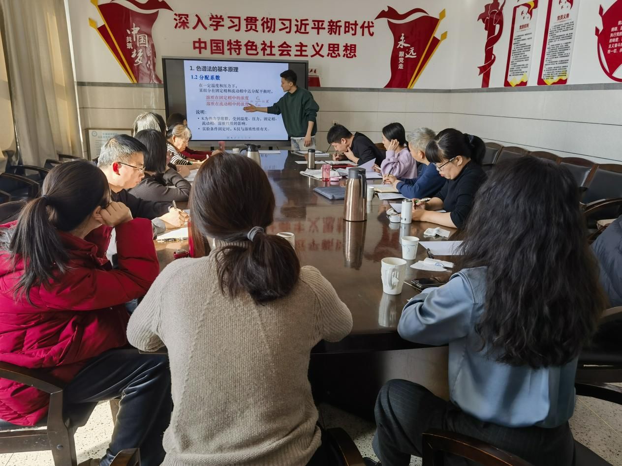 本次活动的第一个环节是新进教师段申老师试讲,试讲内容是制药工程专业的专业核心课程《生物制药分离工程》中色谱分析技术相关内容。试讲过程,段申老师对所讲内容熟练掌握,表达流畅,表现出良好的专业素养。受邀赵国芬教授和陈玉萍副教授进行了点评,两位老师肯定了试讲教师的表现,然后结合各自多年的《生化分离技术》和《仪器分析》授课经验,对课程内容及课程设置、教学设计、员工能力培养等方面提出了针对性的建议。