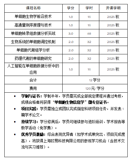 单细胞生物信息学是融合生物学、信息科学与数据技术而形成的一门前沿交叉微专业,旨在培养掌握单细胞多组学技术与生物信息学分析能力的高素质复合应用型人才。