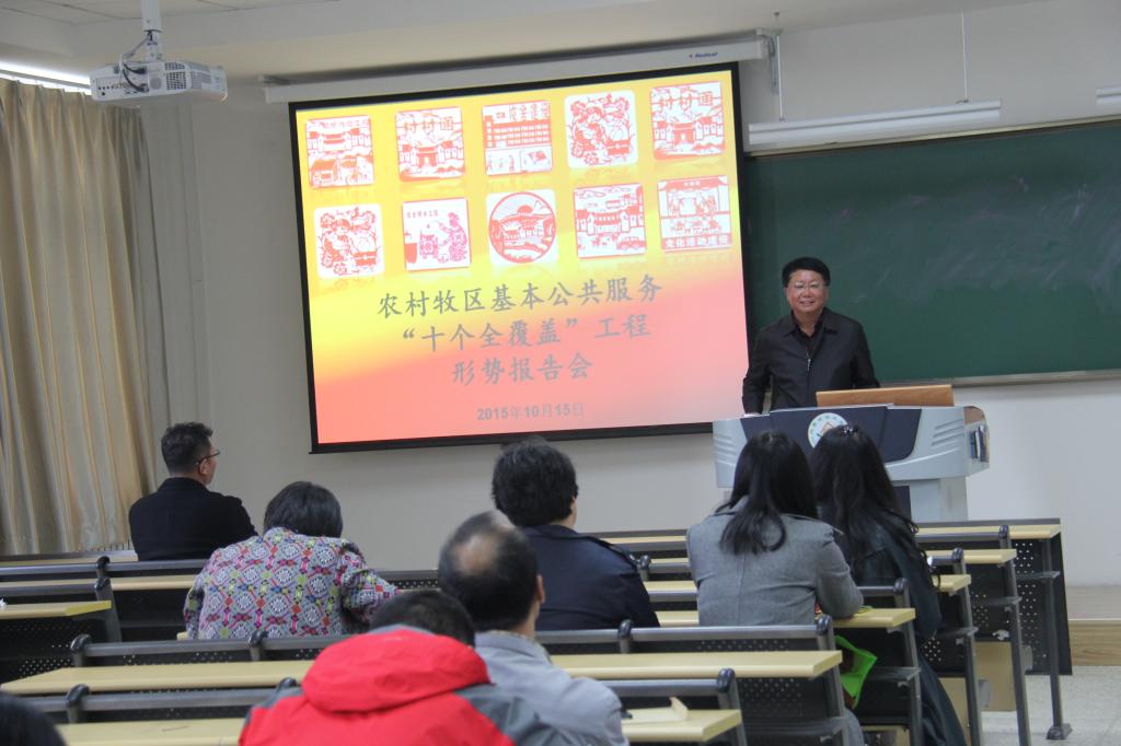 根据公司党委的部署和要求,公司10月15日下午在南教A218召开专题学习会,公司党委书记林宝结合公司组织观摩考察包头市东河区、乌兰察布市部分乡镇“十个全覆盖”工程建设情况的所见所闻,作了题为《农村牧区基本公共服务“十个全覆盖”工程形势报告》的专题报告,学习会由公司党委副书记任燕刚主持,公司全体教职工参加了学习会。