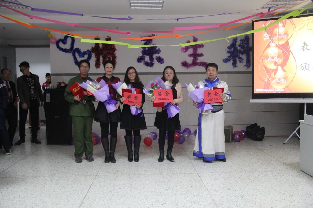 整场联欢会的节目民族、古典与现代兼容,温情与火热并举,形式多样,精彩纷呈。测试分析中心的全体教师的合唱《美丽的草原我的家》将我们带回那个魂牵梦萦的家,制药工程系献上充满温馨的《相亲相爱的一家人》,微生物与发酵工程系玛丽娜独舞《蓝色的蒙古高原》。动物生物技术系全体教师将为大家表演合唱《革命人永远是年轻》,用青春的力量,点燃所有的快乐和梦想;用青春的力量,点亮所有的感动和希望。生物化学与分子生物学系全体教师将表演合唱《萍聚》,一首老歌就如一壶醇酒,暖人心田,回味悠长。微生物与发酵工程系全体教师着汉服走来,诵读经典,穿越了千年的美,为大家献上《汉诗词朗诵》。还有,实验中心的赵世敏、陶羽、刘慧艳三位美女教师为大家献上小合唱《火苗》,植物生物技术的各位老师为大家献上《最炫教师风》。晚会现场还为魏建民老师颁发了工会工作成就奖,对邵世勤等9位老师在工会一年的突出贡献给予了表彰,对员工评选出的白薇等5位“我心目中好老师”给予了表彰。