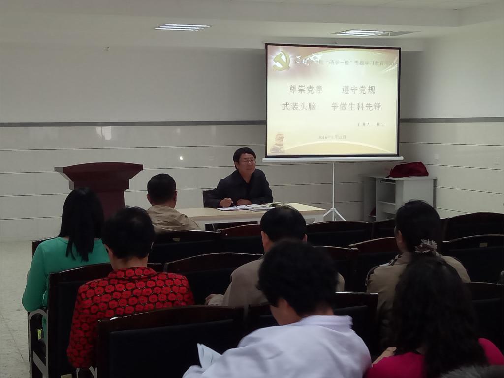 本次专题党课的题目是《尊崇党章 遵守党规 武装头脑争做生科先锋》。首先,林书记阐释了开展“两学一做”学习教育的重要意义和目的。他指出,开展“两学一做”学习教育,是贯彻中央全面从严治党要求的重要部署,是推进思想政治建设常态化的重要实践;是要突出经常性教育特点,推动党的思想政治建设常态化、制度化。“两学一做”,基础在“学”,关键在“做”。讲党课是党委书记日常工作的重要内容,也是同志们交流思想的重要形式。党课中林书记讲到,作为一名共产党员,要不断增强党的意识。共产党员需要经常问自己,言行是否符合党的要求和利益,自己是一名合格党员吗?党支部必需坚持“三会一课”制度,支部大会、支委会、党小组会要按时开,会议内容要精心准备,党员要按时参加支部组织生活。党员应该按时交纳党费,这不仅是强化党员党章意识和党的观念的一种有效方式,也是党员关心党的事业的具体表现。