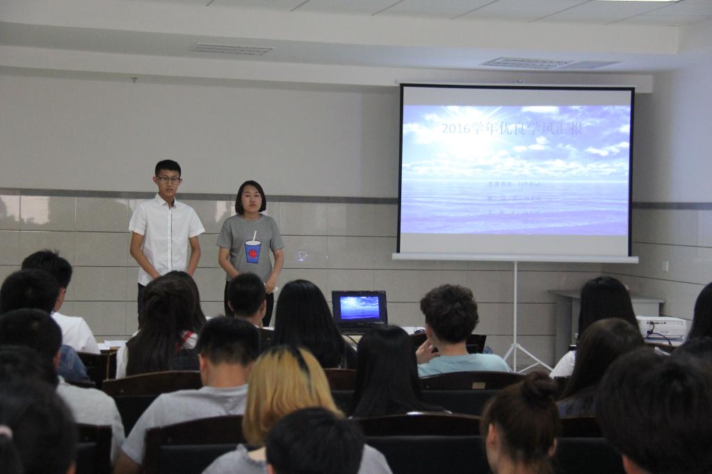 班级负责人分别就班级简介、班级目前学风状况、四六级过级情况、受学业警告员工情况、意向考研员工情况以及班级目前存在的不足以及改进措施等结合PPT形式进行汇报,汇报过程中老师和同学们认真听各班级负责人的汇报并做好详细记录,老师们在每个班级汇报结束后逐一进行点评。