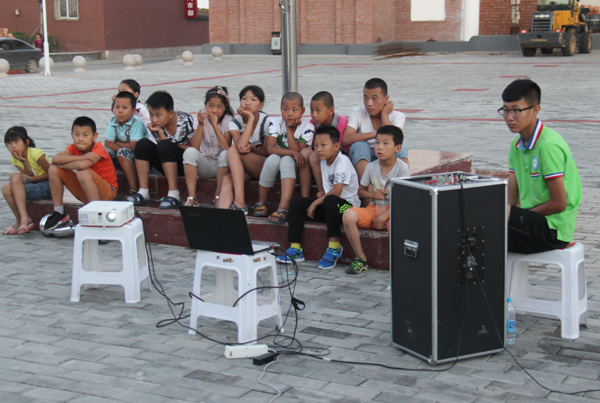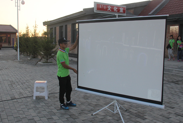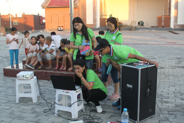 为了增加支教活动的趣味性,提高孩子们学习思考的积极性,同时也为了丰富乡村文化生活,7月12日晚上7:30生科院志愿者们在土左旗小什拉乌素村村委会的广场进行电影放映,使村民每日劳作之余也可以有时间放松,缓解压力。