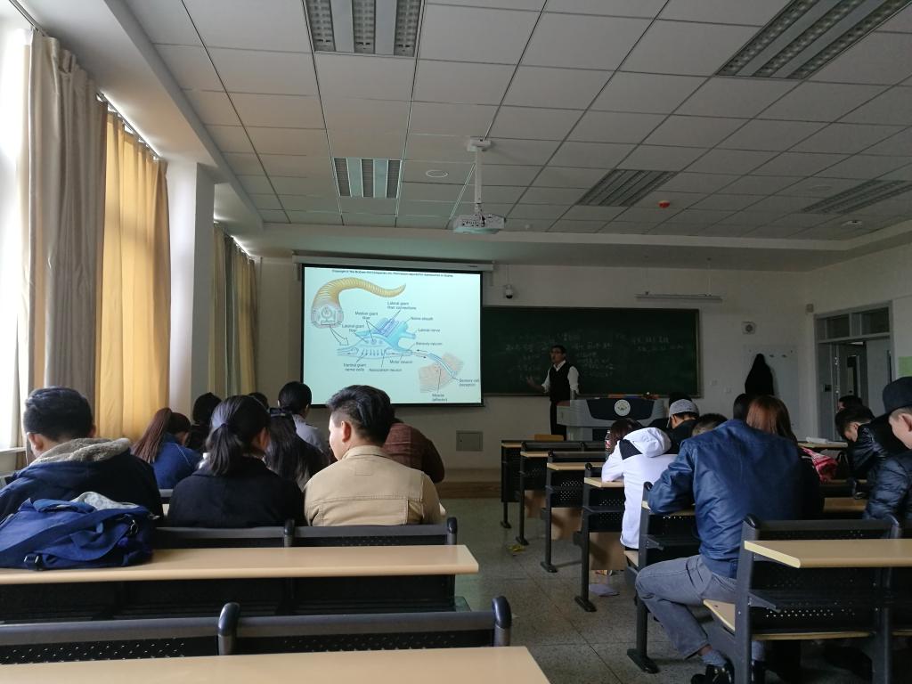 为进一步提高教学质量,在公司中期教学检查前,第八周周五(10月28日)下午,动物生物技术系组织系内全体教师进行了集体观摩及集体听课。下午第一节在公司新校区南教A406教室观摩了公司吴凯峰副教授讲授的《动物学》课程,第二节在南教A223听取了李涛老师讲授的《动物生理学》课程。