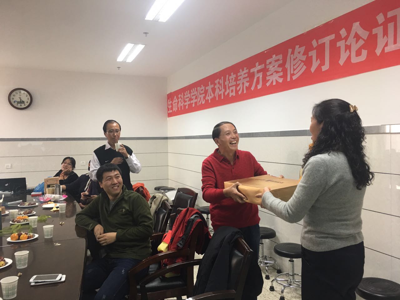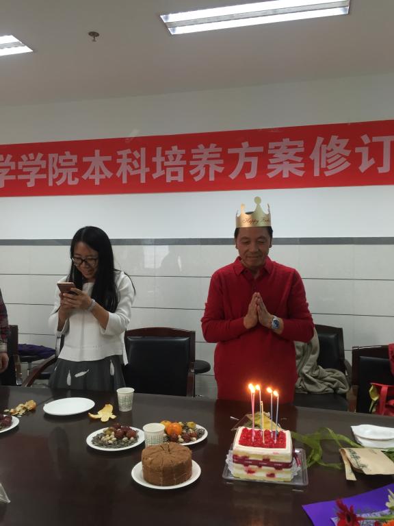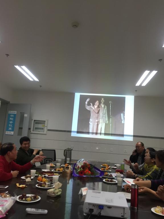 欢庆会上,以一张张老照片展示了苏士老师的青年时代、东渡日本的求员工活、艰苦的创业年代以及和员工一起实习的场景。回顾起大学时和田瑞华老师一起演唱的场景,二位老师又在现场即兴表演了一段。11月11日恰逢苏老师的生日,与会老师为苏老师送上了60岁生日祝福。