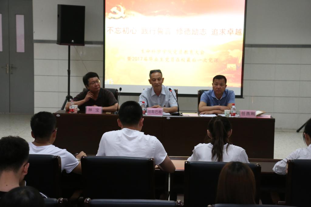 作为生科院2017届毕业生党员教育活动的最后一个环节,6月5日,生科院“不忘初心践行誓言 修德励志追求卓越——走出大学前的最后一堂党课”毕业生党员学习活动在418会议室举行。校纪委书记哈斯巴根应邀出席并讲话,公司党委书记林宝为毕业生党员讲授专题党课,党课由公司党委副书记任燕刚主持。