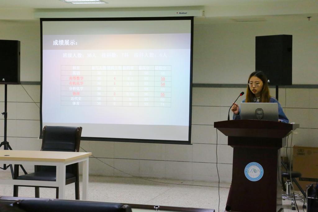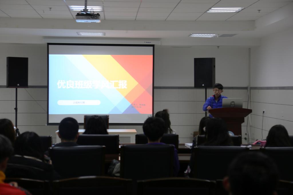班级负责人分别就班级简介、班级目前学风状况、四六级过级情况、受学业警告员工情况、考研员工情况、毕业生就业情况以及班级目前存在的不足以及改进措施等结合PPT形式进行汇报,汇报过程中老师和同学们认真听各班级负责人的汇报并做好详细记录,老师们在每个班级汇报结束后逐一进行点评。