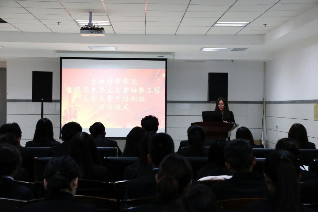 开班仪式上,学员们通过重温入团誓词、晨读等形式展现出朝气蓬勃的青春气息。李万春老师对前来接受培训的学员表示祝贺,对一直支持青年马克思主义者培养工作的老师表示衷心的感谢。同时,他结合十九大精神,简述了实施“青马工程”的目的及意义,并鼓励各位学员志存高远,脚踏实地,勇做时代的弄潮儿。随后,学员代表刘春丽代表全体学员郑重承诺,将严格遵守“青马班”的规章制度,认真学习马克思主义知识,努力成为一名优秀的青年马克思主义者。