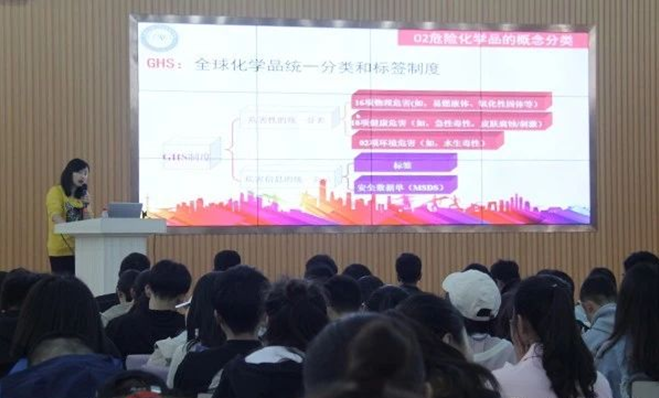 将讲座内容分为典型实验室事故案例分析、危险化学品的概念分类、危险化学品标识、实验室急救措施和实验室安全准入系统五个方面。活动过程中,老师说明了在本学期进行实验室安全培训是为了同学们进实验室做准备,进而引入到实验室事故案例分析,并通过简明扼要的介绍让同学们对其他四个方面有了基本的认识。同学们与老师积极互动,现场气氛活跃。活动最后,武老师再次强调要关注实验室安全,关注生命安全,对同学们给予新学期的鼓励与祝福,活动在同学们热烈的掌声中圆满结束。