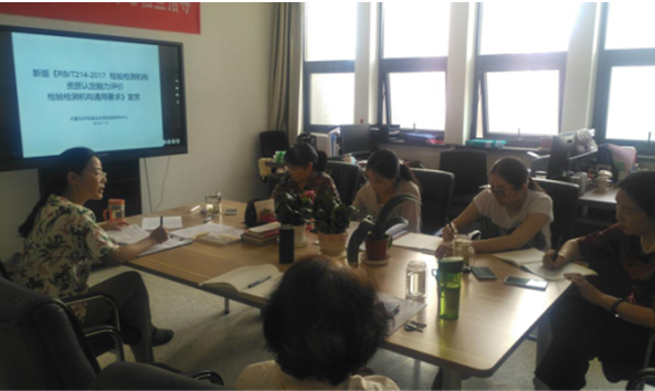 为加强中心质量管理体系运行,持续规范和提高检验检测工作质量,内蒙古农牧渔业生物实验研究中心于7月13日下午3:00在620室,对最新颁布的《检验检测机构资质认定能力评价检验检测机构通用要求》(RB/T 214-2017)进行宣贯培训。
