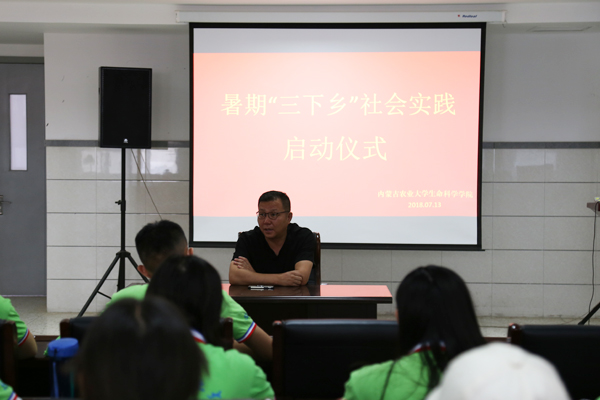 本次社会实践的地点是达茂旗和卓资旗下营。启动仪式伊始,生科公司党委副书记任燕刚针对此次社会实践期间的各项注意事项及实践工作相关部署安排进行强调,他表示团队成员要严格遵守纪律,服从负责人指挥,有高度的安全意识,增强安全防范措施和自我保护意识;要充分发挥个人潜力,有不怕苦、不怕累的精神。启动仪式过程中,任书记要求社会实践志愿者收集达茂旗和卓资旗下营的资料,多多了解扶贫政策,低年级的实践者要多多向有经验的学长学姐学习。随后,生科院第二十届团委员工会副主席闫光因介绍了公司2018年暑期社会实践的整体安排情况。启动仪式最后,任书记表达了对志愿者们的大力支持和殷切关心,同时预祝此次社会实践活动圆满成功。