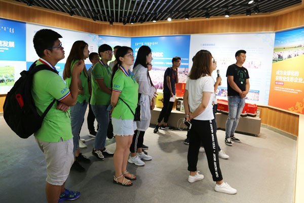 随后,实践队员们来到了达尔罕斯琴格日乐牧场。通过牧场主人斯琴格日乐的介绍,大家了解到,该牧场依托于提供绿色、安全、健康的优质农食品,从媒体推广、社群维护、到场景化互联网牧场,通过线上领养平台与线下草原旅游生活体验相结合,为消费者提供安全、透明、可信的社交化网络金融服务和畜牧养殖体验平台。消费者不但能获得丰厚的农牧业投资回报,还能享受高品质的生活。