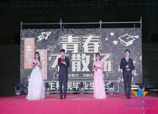 晚会以一段关于大学四年时光美好回忆的视频短片开场。在场毕业生们跟随视频回忆了大学酸甜苦辣的青春生活。随后党委副书记秦海英发表讲话,她在讲话中表达了对毕业生的美好祝福和殷切期待,她相信每一个毕业生都会凭借自己的努力为社会作出贡献。