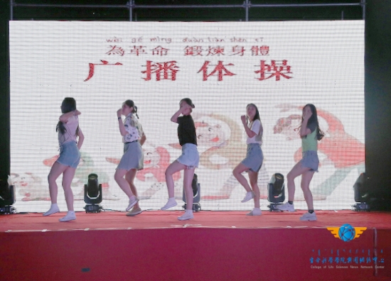 晚会伊始,张琦的一首《Faded》拉开了晚会的序幕,《广播体操》优美轻松的音乐响起,伴着动感的节拍,他们跳动轻快的脚步,挥洒舒放的手臂。由毕业生带来的歌曲《倔强》《同桌的你》《我们》《再见》将同学们带回那个充满活力的时光,金马杯舞蹈演员的一曲《跳起吆喝尔》将晚会带向高潮,小品《有话好好说》更是充满了乐趣,让观众忍俊不禁。