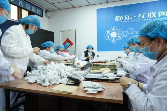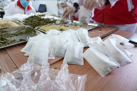 杜鑫在山西省静乐县中医院主要负责协助医护人员包装预防新冠病毒的草药包,这份看似简单的工作其实并不简单,因为草药包需要将黄芪、白术、防风、金银花、连翘和芦根这六味药按照一定的比例装成药包,之后进行密封后装箱。第一,要保证六味药材的比例准确无误,其次为了防止药物被污染,同时做好个人防范,志愿者们整天都需要戴口罩,戴头套、手套,一天8个小时下来头被勒着闷得慌,手和脚更不用说,因为长时间闷着,手指头被汗水浸出了道道深纹。一旦工作起来喝水的频率也减少了,累了就看看旁边带着身孕还在工作的医护人员,给自己鼓鼓劲。虽然医院没有规定一天要做好多少包,但杜鑫和她的志愿者同事们都不约而同的在加速。每天在医院里都能看到这样一幕,杜鑫在跟志愿者们一起进行着比赛,比谁一天做的又快又准。作为队里面唯一的一个男生,因为手脚比较“粗苯”虽然很努力但从来没有拿过第一。一天晚上一个护士小姐姐把她做好的药包拿来给杜鑫说“这是奖励给你的,每一个努力的人都值得“第一”。最终他们以“超人的速度19人仅用时9天便完成了10万余份药包制作,当一份份的药包送到市民手里时,杜鑫心里认为这就是感召的力量,力量的名字就是信仰,就是团结。