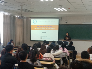 2020年12月10日下午南教A220,本次活动在热烈的气氛中展开。应生物技术专业班主任邀请,公司李国婧教授、植物生物技术系主任姚庆智教授、动物生物技术系主任吴凯峰副教授从各自角度为新生做了报告。