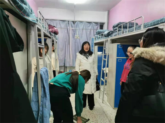 时值元旦佳节,为了了解同学们期末考试准备情况和近一段时间的生活状况。12月31日晚9:00,公司党委副书记秦海英带领学办辅导员以及各班班主任一行20余人深入到公司170间员工宿舍进行走访,仔细询问了解同学们的期末备考情况以及回家车票购买情况,并给同学们带去了新年祝福。