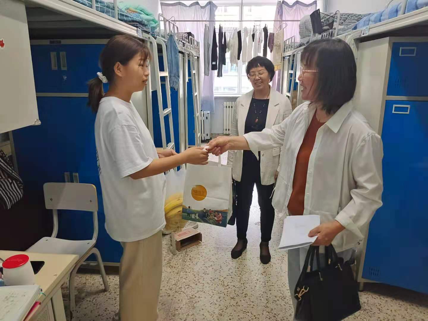 党委副书记秦海英老师给员工送上慰问品
