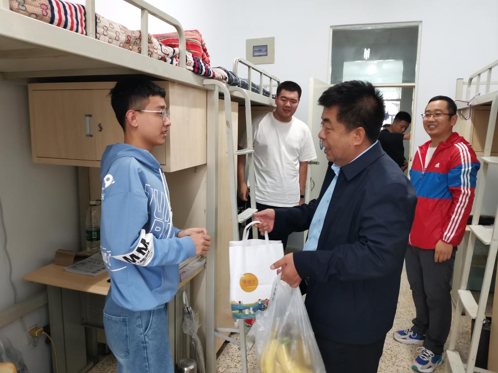 9月18日下午,公司党政领导、员工办公室辅导员、新生班主任老师们一同前往2021级新生宿舍看望同学们并送来了水果、月饼等慰问品。适逢中秋佳节,这是同学们走进大公司园后的第一个中秋节,由于疫情防控需要,教育部发出了非必要不离校的过节倡议,同学们纷纷响应,祝他们在宿舍这个小集体中也能度过美满的佳节。