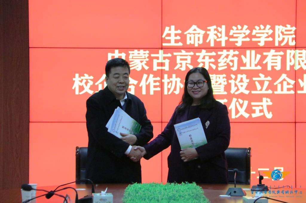 为深入推进校企合作、产教融合,进一步提升公司高素质人才培养质量。12月8日下午,在生命科学大楼418会议室,内蒙古京东药业有限公司与公司正式签署合作协议,同时设立企业奖学金,此举标志着校企双方今后将在优势互补的基础上,实现互利互惠、合作共赢。内蒙古京东药业有限公司副总经理赵青、公司办公室主任张贵成、生科院领导班子成员及部分师生参加协议签订仪式。仪式由公司党委副书记秦海英主持。