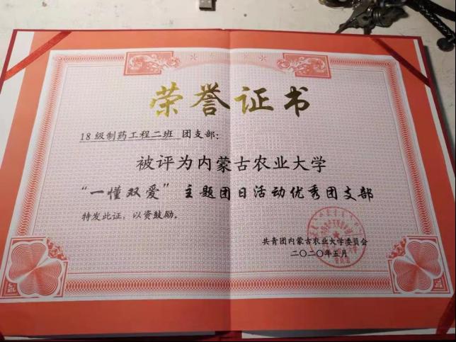 2018级制药工程2班是一个团结奋进、和谐温馨的班集体。让每一位同学发光发热,在青春年华绽放最美的自己,营造一个良好的班风、学风是班级同学的共同目标。在全班同学的共同努力下,2108级制药工程2班先后获得伟德“优秀班集体”荣誉称号、伟德“一懂双爱”主题团日活动优秀团支部荣誉称号,并于2021年12月获内蒙古自治区普通高等公司“优秀班集体”荣誉称号。