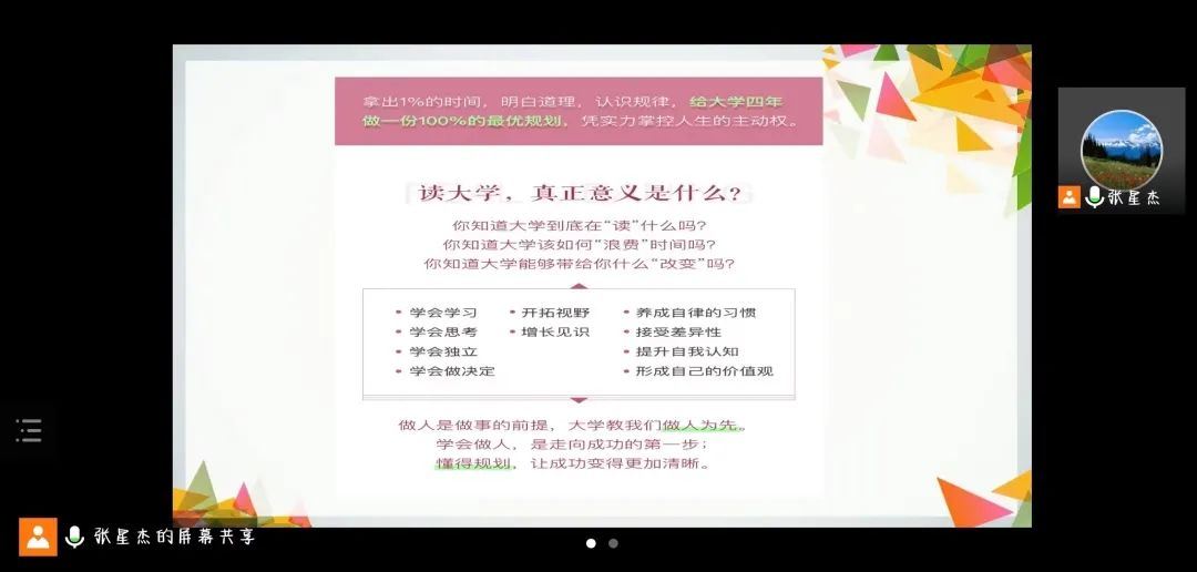 为了使新生能够更好地适应校园生活,9月3日下午,伟德官方网站通过腾讯会议开展“2022级新生适应性讲座”,2022级全体同学参加,伟德官方网站张星杰老师出席本次讲座并担任主讲人。