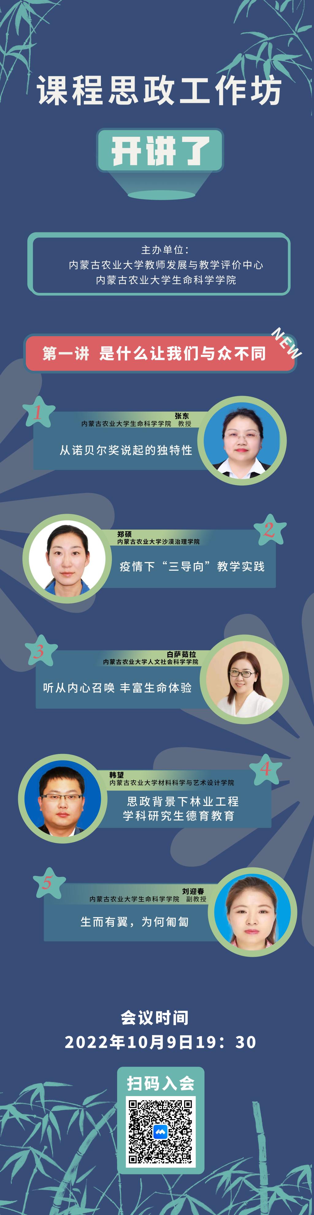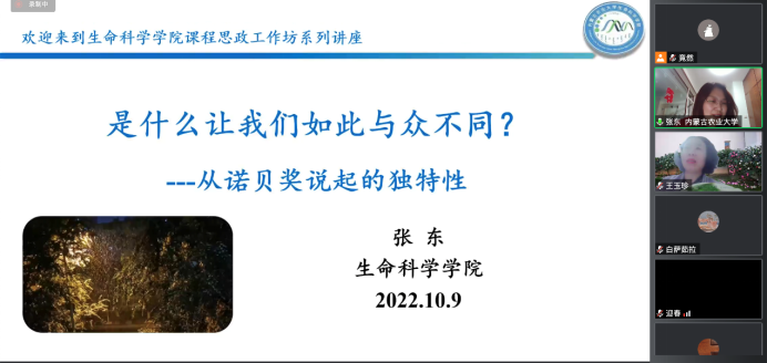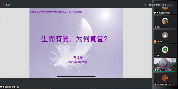 疫情当下,如何营造有温度的课堂让教学保质保量?如何利用课堂主渠道给员工传递战疫正能量?10月9日,由伟德教师发展与评价中心与内蒙古农业老员工命科学公司联合举办了线上课程思政工作坊。工作坊第一讲以“是什么让我们与众不同”为主题展开研讨。本次研讨会由内蒙古农业老员工命科学公司副经理王玉珍教授主持。来自伟德官方网站的张东和刘迎春、沙漠治理公司的郑硕、人文社科学公司的白萨如拉以及材料科学与艺术设计公司的韩望老师进行了课程教学经验分享。会议吸引了来自伟德及其他一些兄弟院校的师生近百人相聚云端,共同研讨疫情当下,如何在线上教学中开展课程思政。