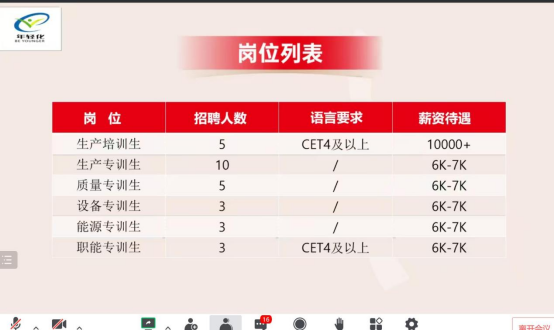 “科学发展,鼓励创新”, 为了寻找拥有梦想、渴望创造价值的生科毕业生,11月28日下午,内蒙古金泽伊利乳液有限责任公司于腾讯会议举办了生科院2023校招专场线上宣讲会。生科院学办老师蒋璇、90余名有求职意向的2023届毕业生参加了此次宣讲。
