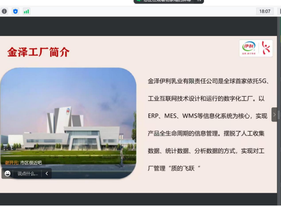 伊利招聘负责人杨家瑶首先通过宣传视频让同学们对公司的建立及发展历程有所了解。随后,他以PPT的形式向同学们介绍了关于我们、岗位情况及薪资待遇、培养体系、发展通路等。内蒙古金泽伊利乳业有限责任公司是全球首家依托5G、工业互联网技术设计和运行的数字化工厂。摆脱了人工收集、统计、分析数据的方式,实现对厂管理“质的飞跃”。最后,公司代表李百秋向大家说明了目前公司的岗位需求,也对同学们有关“薪资待遇”、“工作时间”等疑问进行了详细解答。
