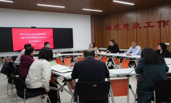 为进一步做好公司毕业生就业工作,多渠道提供高质量就业岗位,加深院企沟通与合作,4月11日上午,公司党委书记张星杰、经理张文广、党委副书记秦海英、副经理张子义、副经理王玉珍、生物制药工程系系主任巩培及员工工作办公室主任王伟兰,与内蒙古中牧生物药业有限公司代表就公司毕业生实习、就业等问题,于生科楼408会议室开展座谈会。