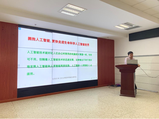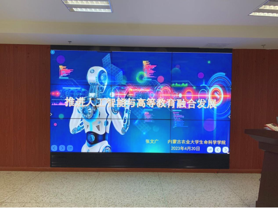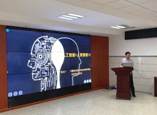 2023年4月20日下午,伟德官方网站经理张文广在生科楼418会议室带来了一场以“推进人工智能与高等教育融合发展”为主题的讲座,公司各系主任,学科主任、团队负责人及青年教师参加讲座。