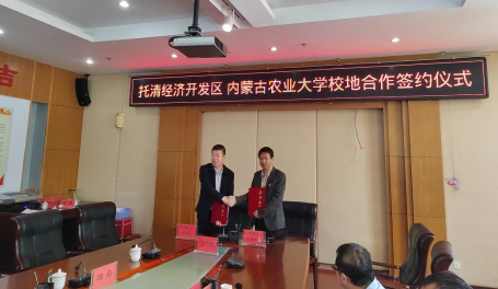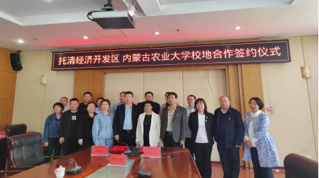 会议议程第四项:内蒙古呼和浩特托清经济开发区管委会与内蒙古农业老员工命科学公司签订了校地合作协议。达成的合作事宜有:一、共建共享重点实验室和重点研究基地;二、在生科院共建“科技创业服务中心”;三、联合建设相关领域重点实验室、工程研究中心,开展学术研究和联合攻关;四、就共同关注的领域、组织科研人员联合申报、共同承担国家、自治区和地方政府重大重点研究项目;五、每年组织辖区内生物制药企业到校招聘,园区为公司毕业生就业实习提供便利;六、公司将园区生物制药企业作为社会实践基地,组织师生开展各类社会实践活动。七、建立双方领导互访机制,通报、交流和磋商科技合作过程中的相关事宜。