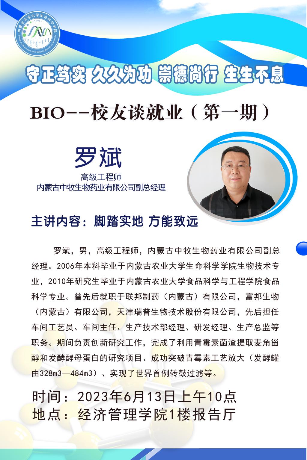 为深入学习贯彻党的二十大精神,落实党中央、国务院“稳就业 促就业”的决策部署和自治区关于高校毕业生就业工作的安排,实现毕业生高质量就业。用心、用情全面做好2019级毕业生就业服务工作。公司推出了BIO—员工谈就业系列活动。旨在以座谈会为载体,聚员工之力,集员工之智,以榜样引领,用典型带动,给广大毕业生提供更多元的服务,调心态、破限制,实现就业的迷茫到超越。6月13日上午10点,伟德官方网站特邀公司2006级员工,内蒙古中牧集团副总经理罗斌于经管院1楼报告厅举办员工论坛第一期,公司党委副书记秦海英主持会议,公司2019级员工与部分员工代表参加会议。