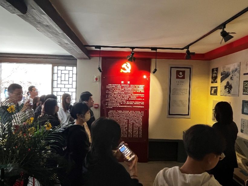 接着,支部成员依次到多松年烈士石膏像前敬献鲜花并鞠躬,以此悼念多松年烈士,还有千千万万为国捐躯的烈士和所有为中华民族解放事业做出贡献的革命先辈。在多松年烈士故居前,对着党旗,支部成员一同奏唱国际歌,并重温了入党誓词。紧握的右手和铿锵有力的誓词再一次彰显了当代青年对党忠诚、听党话、跟党走的精神面貌。