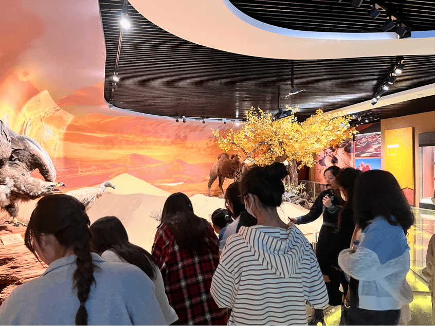 参观过程中,解说员详细地为同学们讲解了自然环境的现状、面临的挑战以及保护生态的重要性。同学们聚精会神地聆听内蒙古野生动物的生活环境,不同种类植物的成长过程等,聆听讲解员讲述大自然变迁发展的故事,探寻生命的起源……,同学们对自然环境有了更深入的了解和认识。