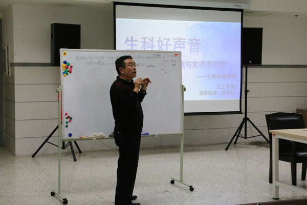 活动伊始,段老师阐述了生物工程这一专业的基本内容,举出诸多切合生活实际的例子,内容通俗易懂又不失其专业性,同时老师向同学们讲解了专业的相关知识并进行拓展,对生物工程专业的未来前景进行分析。随后,段老师将多个实例进行对比,指出它们之间的优劣,在场的同学们兴趣盎然。活动最后,同学们积极主动的向段老师提出自己的疑惑,段老师耐心地一一作答。同学们对老师表达了深深的谢意,活动在同学们的热烈掌声中圆满结束。