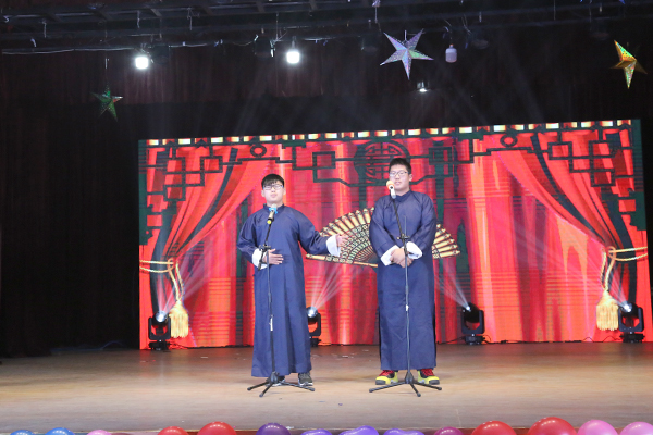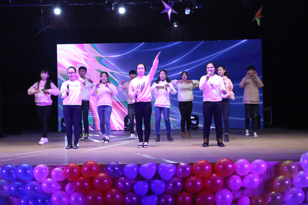 随着劲爆的音乐响起,晚会在激情的开场舞中拉开了帷幕。2016级员工的舞台剧《课堂课间那些事》,生动展现了刚步入大公司园的员工在课堂和课间的趣事,折射出大学新生的迷茫与困惑,发人深思。国教院员工带来的古筝伴舞《凉凉》旋律动听,古韵十足,舞姿婀娜,引人入胜。随后,V-top组合演唱的英文歌曲《I Know you were trouble》,别具一格的和声演唱方式将晚会气氛推向高潮。此外,动感十足的舞蹈串烧令台下的拍手叫好;充满正能量的独唱《如果有来生》,令观众体会到歌手倔强的情感。精彩纷呈的节目轮番登场,歌舞、相声、魔术等精彩的节目为观众呈现了一场美轮美奂的视听盛宴。