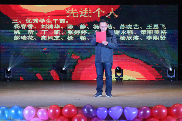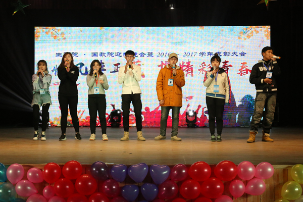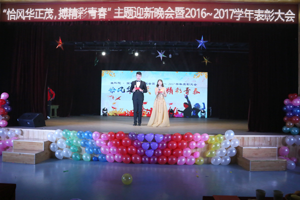 为迎接2017级新生的到来,为员工搭建展示自我才华舞台,营造和谐轻松的校园氛围,同时为表彰一批优秀的员工团体和个人,打造优良学风。12月17日晚上,生科院联合国教院于东区礼堂举办“恰风华正茂,博精彩青春”主题迎新晚会暨2016-2017年度表彰大会。生科院公司党委副书记任燕刚,国教院副经理刘翠兰,生科院院办主任、经理助理武春燕,经理助理张子义,员工办公室主任孙丽鹏,团委副书记李万春,制药工程系党支部书记、系主任王玉珍,2017级班主任孟建宇、邵世勤、邵玉芬、巩培应邀出席晚会。第二十届团委员工会全体成员,2016、2017级全体同学积极参加活动。