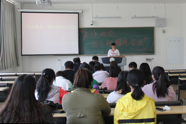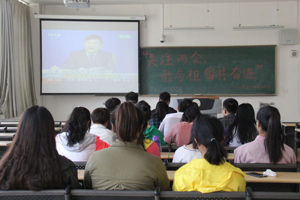 活动伊始,团支书张洪洋为同学们介绍了“两会”相关内容,并播放“两会”视频。会上,同学们观看了国务院总理李克强同志作的政府工作报告,切实感受到祖国的发展态势。大家纷纷表示,一定要认真学习领会贯彻“两会”精神,努力提高自身修养,掌握专业技能,勇于担当使命,为实现中华民族伟大复兴的中国梦而不懈奋斗。活动最后,同学们自由讨论关于“两会”内容和精神的感想,并提出自己的想法。大家各抒己见、畅所欲言,现场气氛热烈融洽。