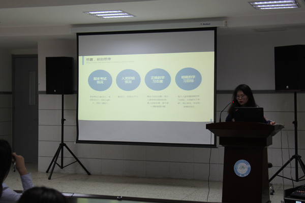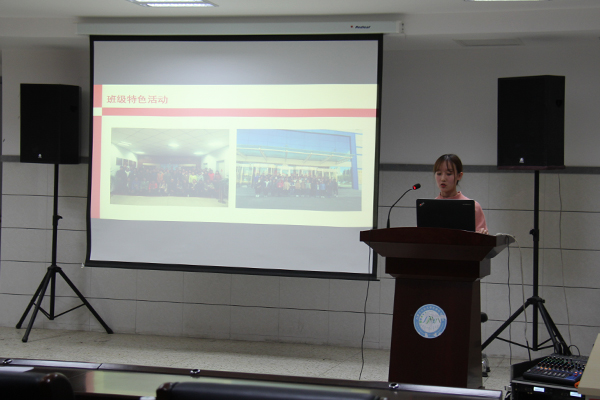 活动伊始,组织部干事武乐乐简述此次活动目的及意义,介绍活动评委并宣读评分细则。活动过程中,各班团支书自愿上台汇报,他们精神饱满,侃侃而谈,从班级成绩、特色团日活动、对班级未来的展望进行汇报。此外,在团建方面,各班不拘于传统方式,积极开展创新性团日活动。团支书们对工作中的不足做出具体分析,针对班级班风的建设提出具体措施,并对未来班级学习制定详细计划。