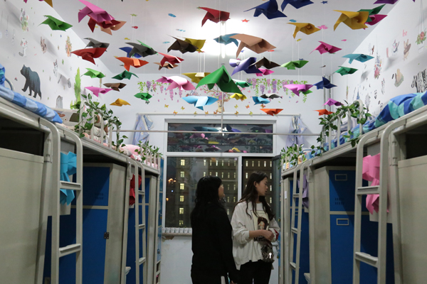 活动伊始,四位部长首先参观了公司C座女生宿舍,各个女生宿舍从内务整理到主题设计,从门面装饰到成员资料,各个细节都布置到位,装饰出了自己的个性与风格。随后,部长们又来到了B座男生宿舍,男生宿舍装饰的风格不一,各具特色,显示出公司学子朝气蓬勃,积极向上的青春风貌。活动最后,蒋跃对宿舍装饰进行总结,他表示宿舍整体装饰充满活力,别出心裁。同时,希望同学们通过此次宿舍装饰能够更加认真对待宿舍卫生问题,加强校园文明建设。
