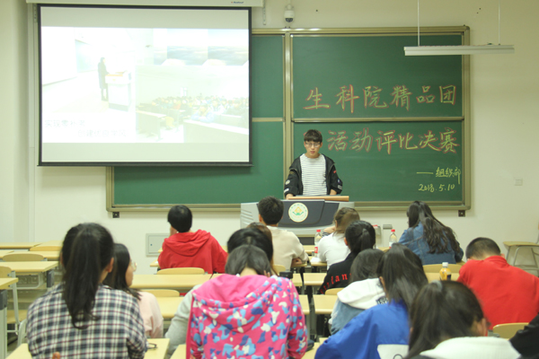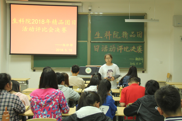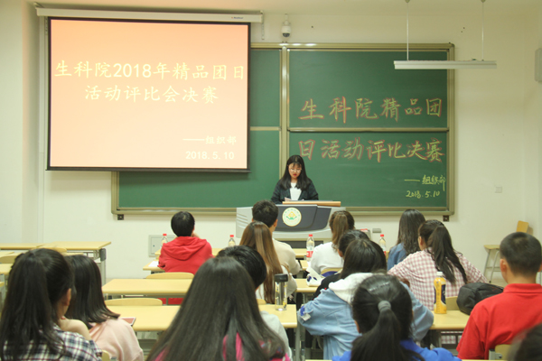 为了解各团支部学习及团日活动举办情况,积极响应“两提高,一降低”号召。5月10日晚,生科院组织部于南教110举办生科院2018年上半年精品团日活动评比决赛。生科院本科生第一党支部代表颜咏雪、蔚丹,本科生第二党支部代表郝瑞花、谢永强出席本次活动并担任评委,生科院各班团支书及同学积极参加本次活动。