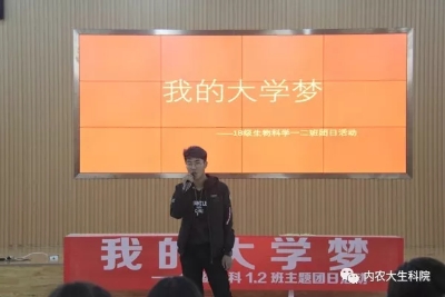 活动伊始,18级生科S1、S2班的张鑫慧,赵欣悦,乌吉木吉三位主持人以汉英蒙三种语言的形式为大家介绍本次团日活动的节目。活动过程中,18里生科S1、S2同学们表演了各种各样的节目,并派员工代表分别展示了自己对大学梦的认知和了解。在互动环节,同学们都踊跃参与,充分看到了新时代老员工应有的蓬勃奋进的姿态。活动最后,生科S2班团支书乔柯文进行了活动总结,希望同学们应怀着赤诚的心迎接美好的老员工活。